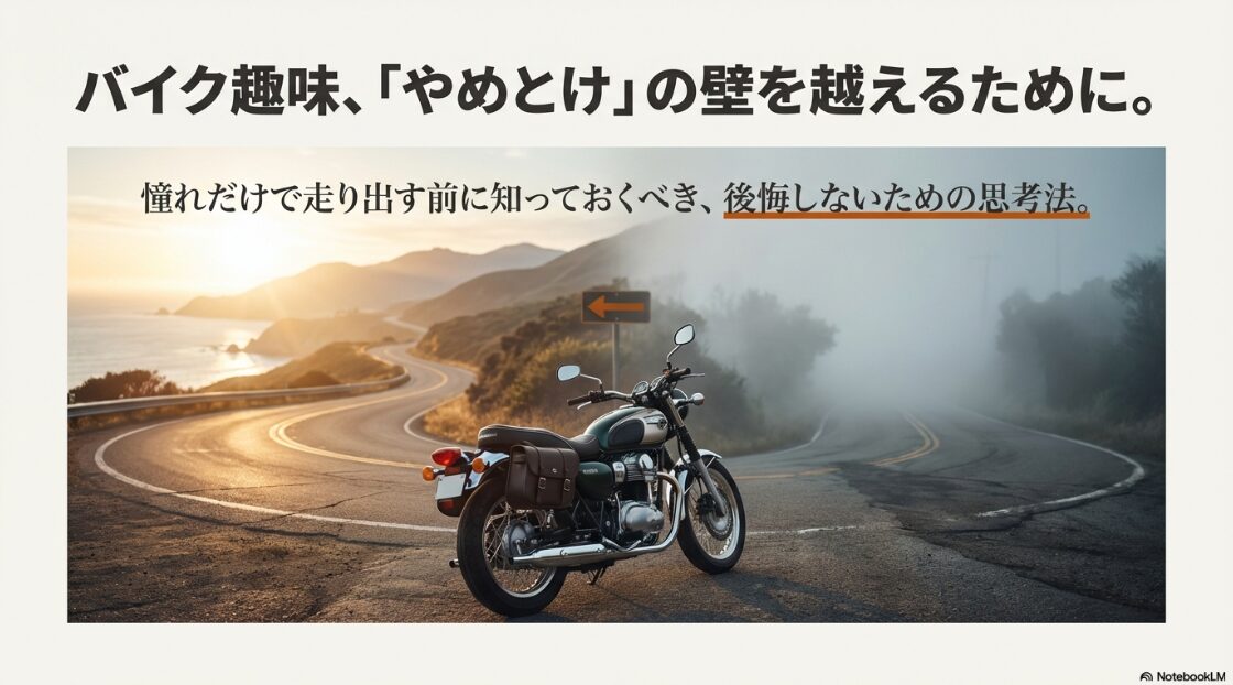 ここまで、バイク趣味に関するネガティブな側面、リスク、コストについて包み隠さずお話ししてきました。これらを読んで「やっぱりやめよう」と思ったなら、それも一つの賢明な判断です。