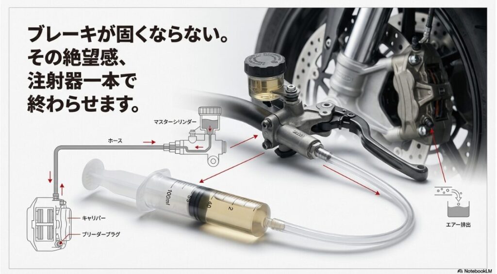 バイクのブレーキをエア抜きしても固くならない時の注射器のやり方